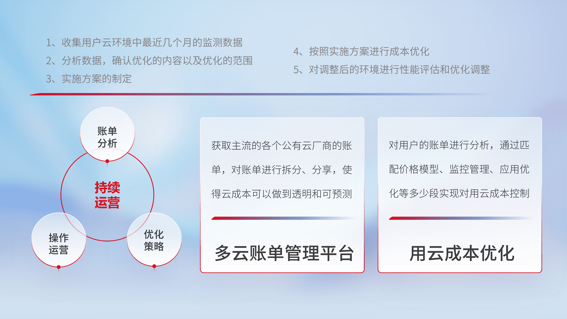 运用智能化工具分析云资源,,提供日常费用可视化工具,,,自动账单拆分,,,成本优化云上费用,,,,降本增效。。。。